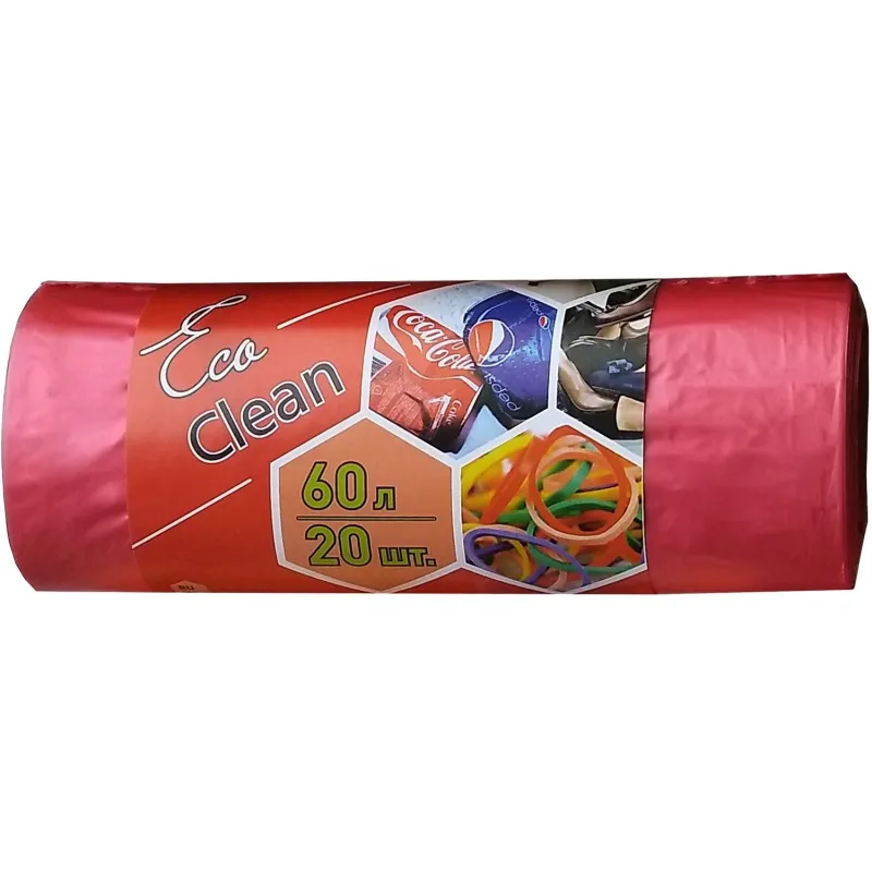 Мешки для мусора ПНД 60л 10мкм 20шт/рул красный 58х68см