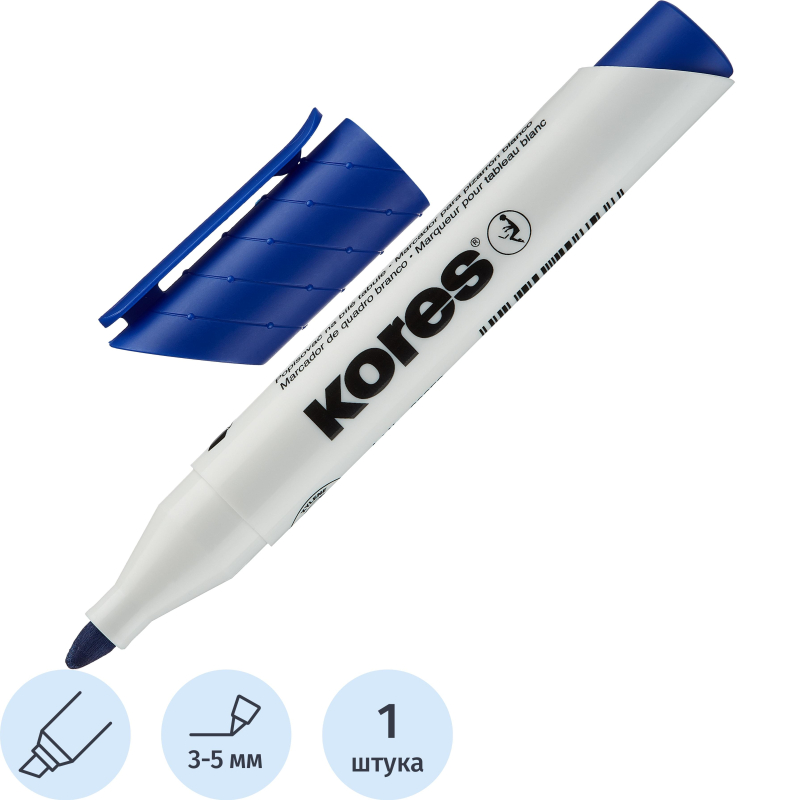 Маркер для белых досок KORES синий 3-5 мм скошенный наконечник 20853