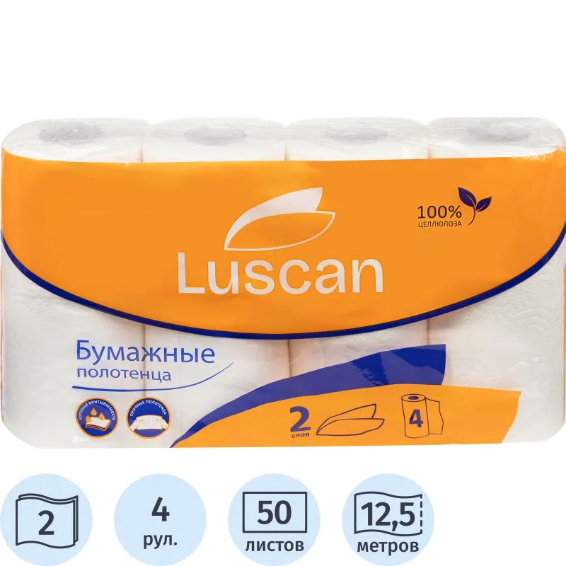 Полотенца бумажные LUSCAN бел цел 16,5-17м 2-сл.,с тиснением, 4рул./уп