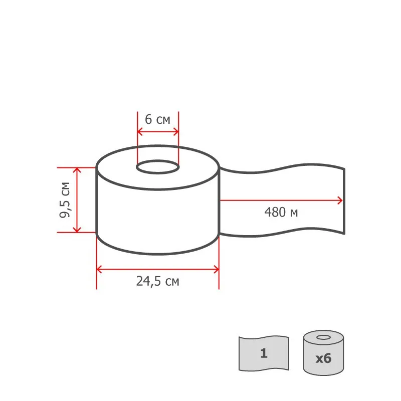 Бумага туалетная д/дисп Терес Эконом макси 1сл бел втор 480м 6рул/уп T-0014