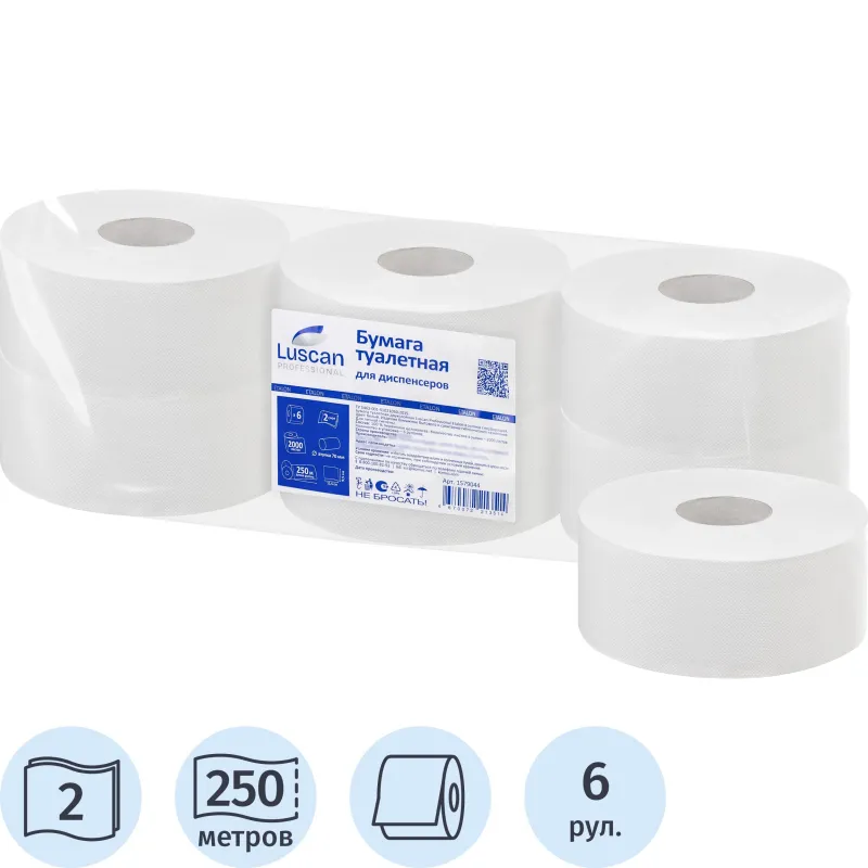Бумага туалетная д/дисп Luscan Prof Etalon 2сл бел цел втул 250м 6рул/уп