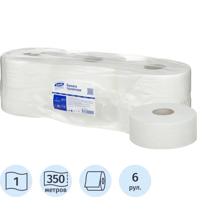 Бумага туалетная д/дисп Luscan Prof Optima 1сл бел цел 350м 6рул/уп