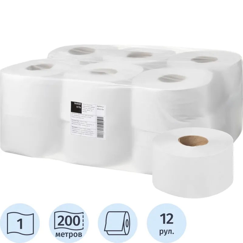 Бумага туалетная д/дисп Выбор есть 1слвтор200м12рул/уп