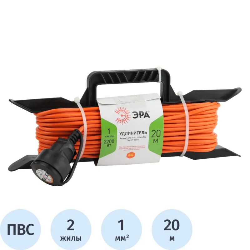 Удлинитель силовой ЭРА ПВС 3x1.5мм2 20м на рамке c/з 1 розетка