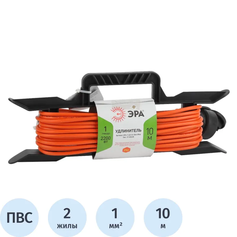 Удлинитель силовой ЭРА на рамке б/з 1 гн 10м ПВС 2х1 IP44(Б0043039)У1-03233