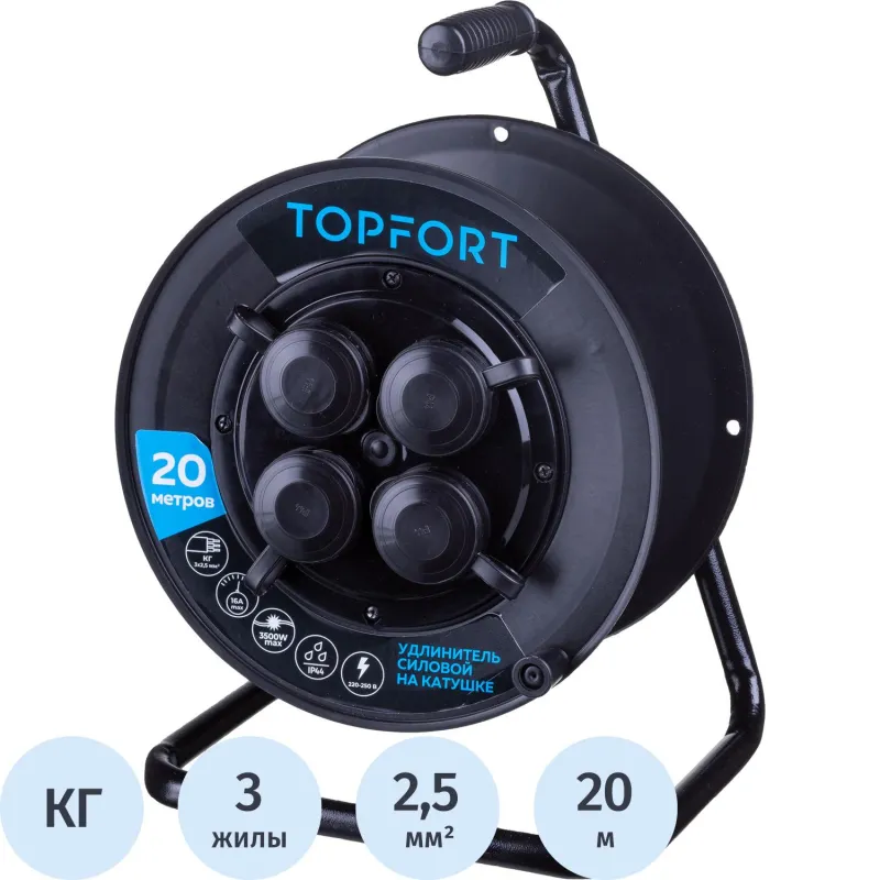 Удлинитель Topfort пласт. КГ 3х1,5 20м на катушке IP 44 (c/з)