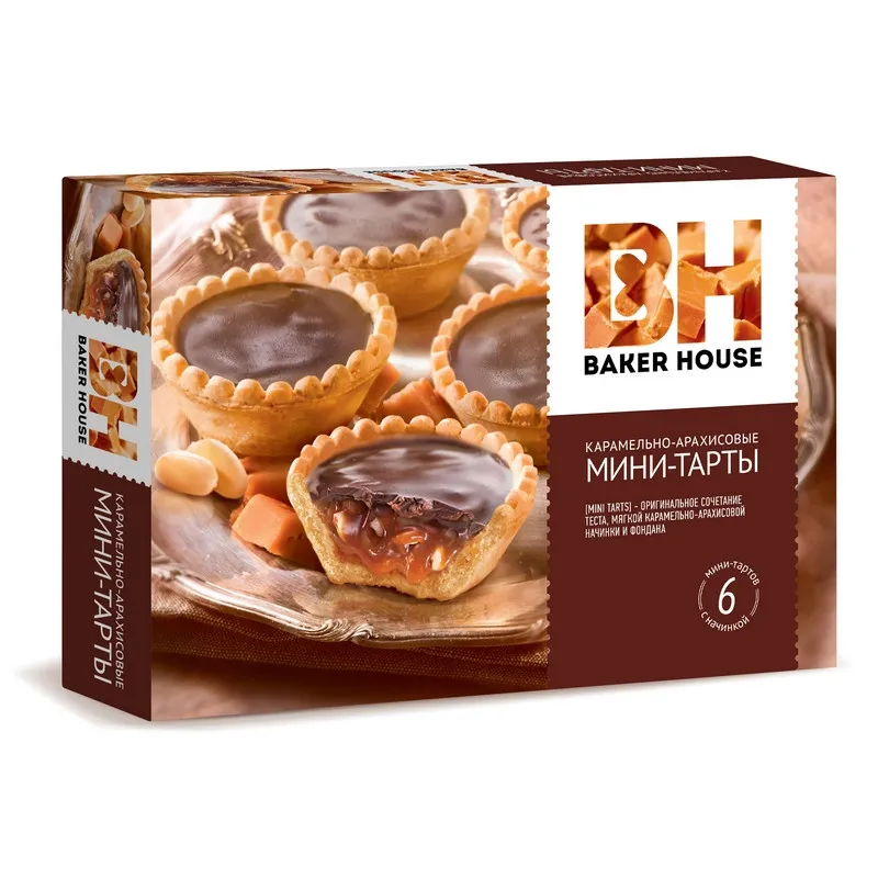 Пирожное Мини-тарты Baker House с карамельно-арахисовой начинкой, 240г