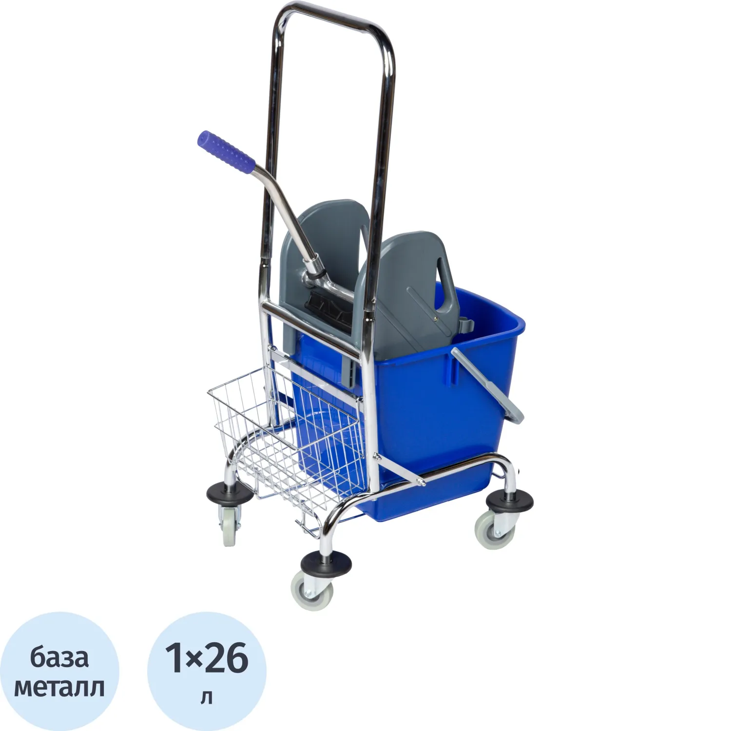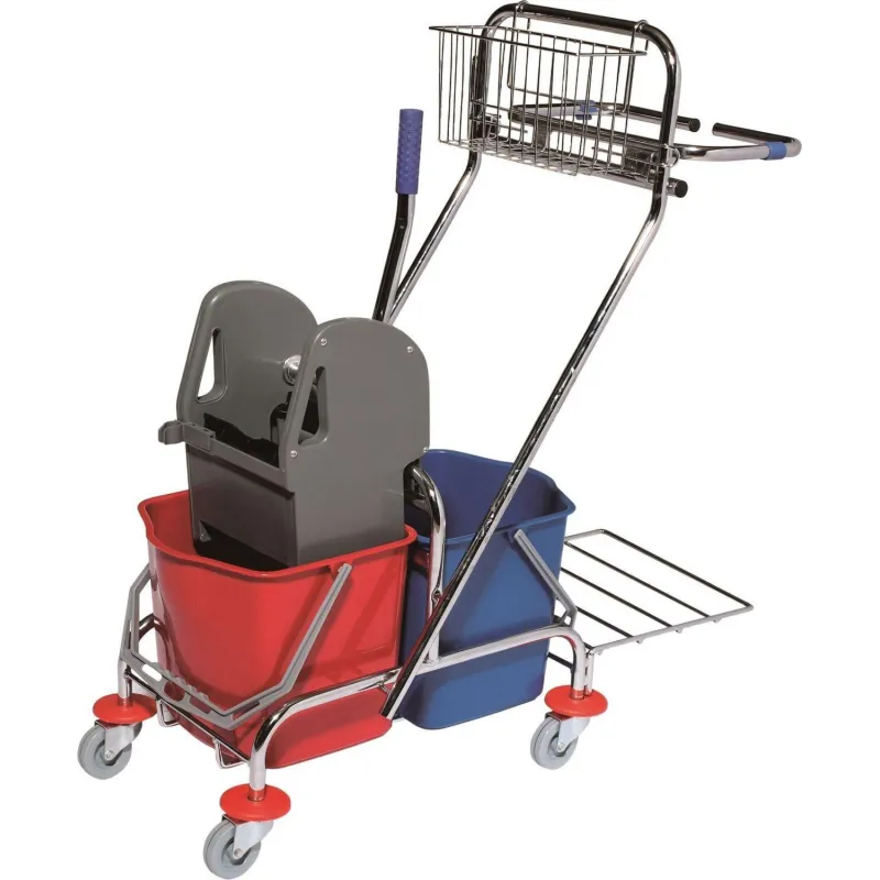 Тележка уборочная двухведерная 2х15л, корзинка, держатель мешка для мусора