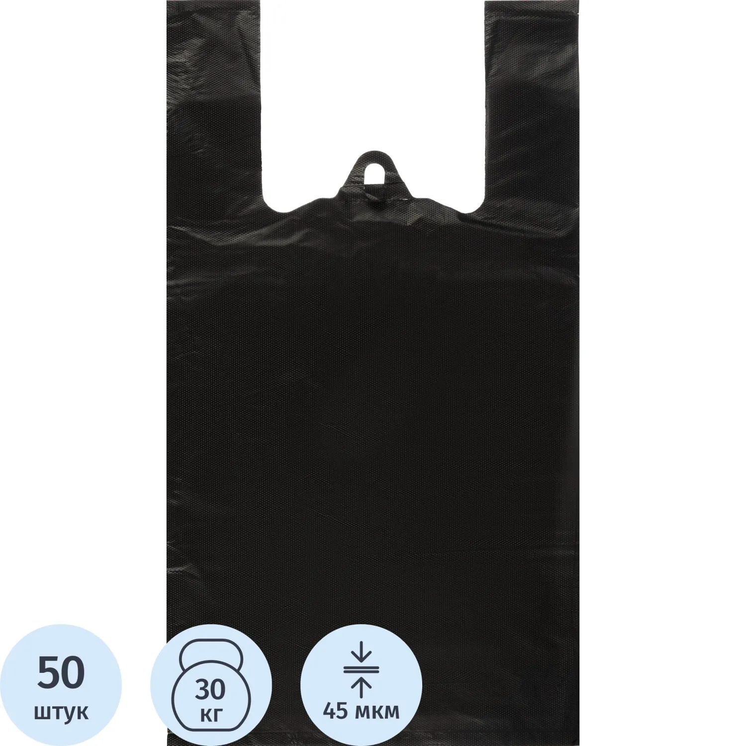 Пакет-майка ПНД 40+18x70 см, черный, усиленный, 45 мкм, 50 шт./уп