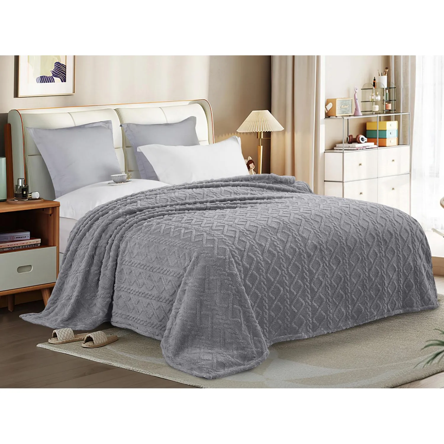 Плед велсофт 200х220см молочный тиснение 260гр 11-4801 G