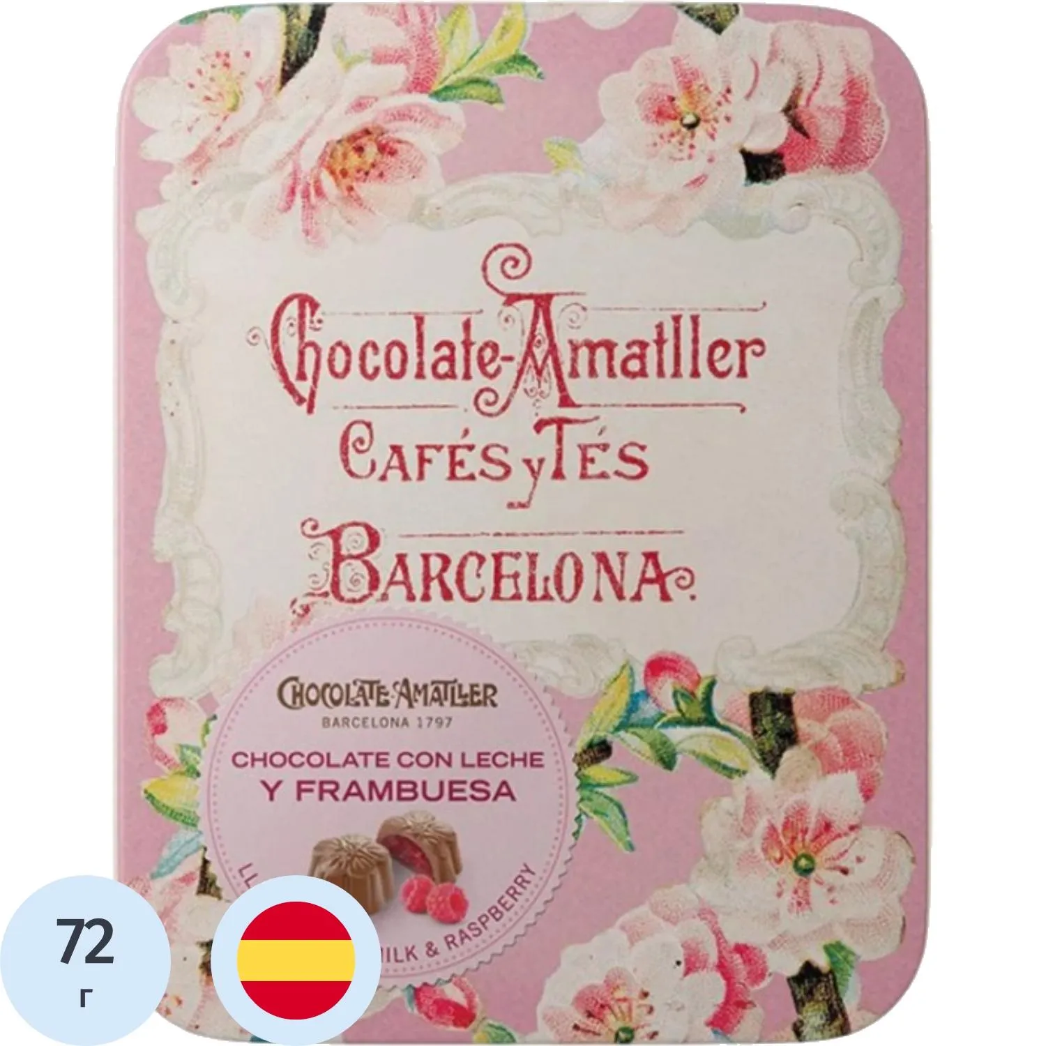 Конфеты шоколадные AMATLER с малиновой начинкой в ж/б, 72г