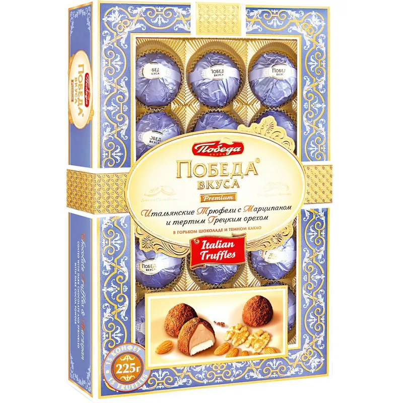 Конфеты Шоколадные итал. трюфели с марц. и терт.грец.орехом, 225г