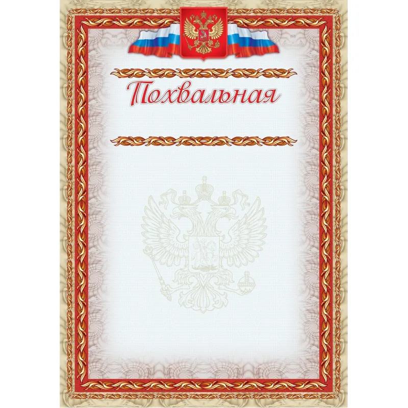 Благодарность А4-41/Б корич.рамка,герб,трик230г/кв.м10шт/уп