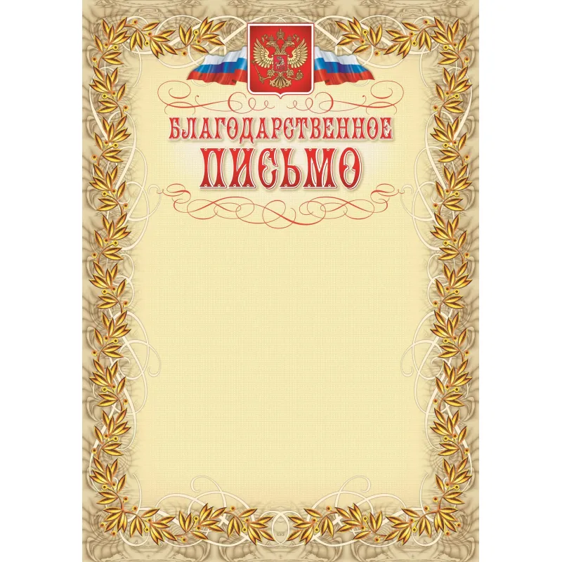 Благодарность герб и флаг,рамка лавровый лист,А4,КЖ-158,15шт/уп.