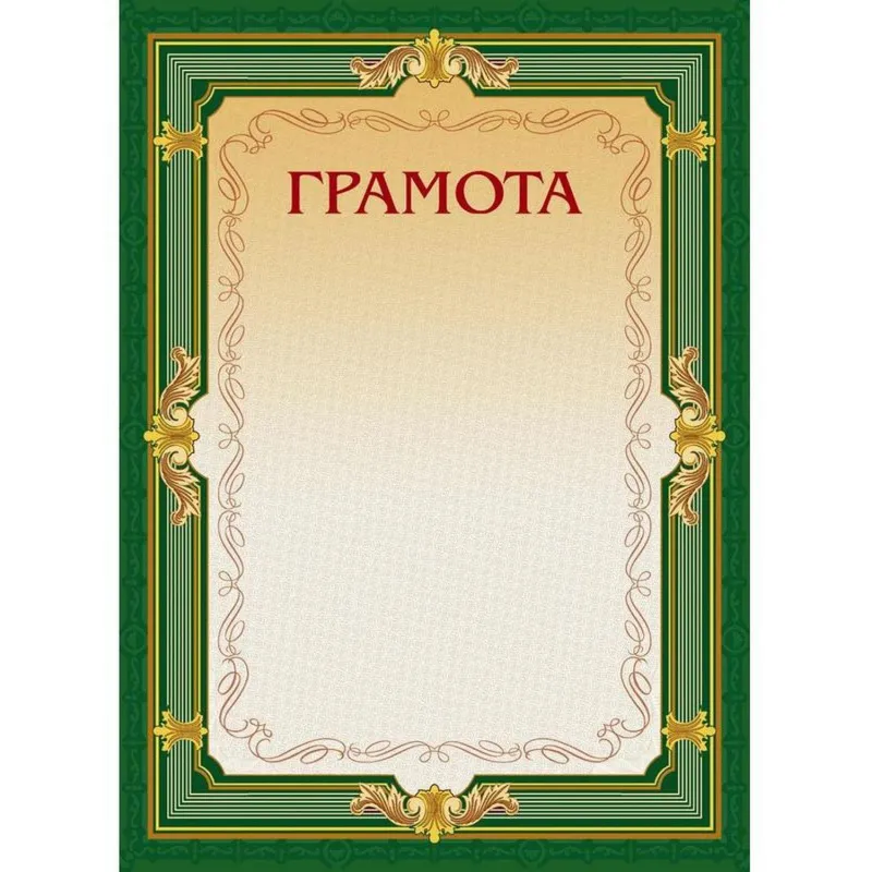 Грамота А4-22/Г зел.рамка,без герба230г/кв.м10шт/уп