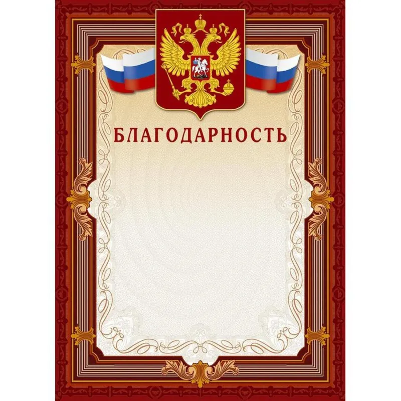 Благодарность А4-15/Б кор.рамка,без герба230г/кв.м10шт/уп