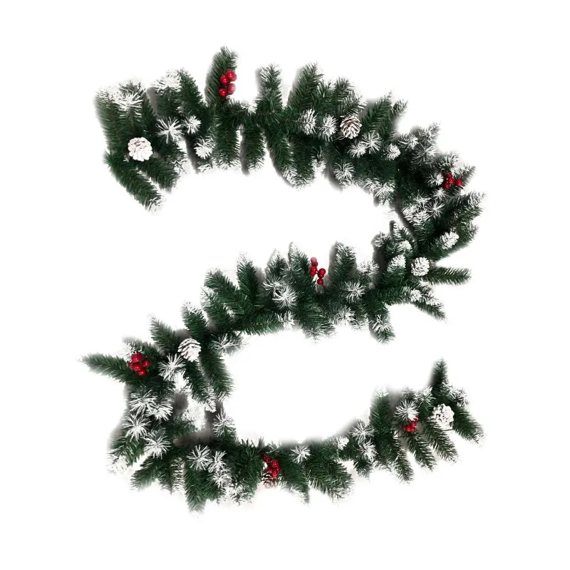 Гирлянда Хвоя новогодняя нарядная из ПВХ,заснеж,ягоды 25x25x270см арт.90566
