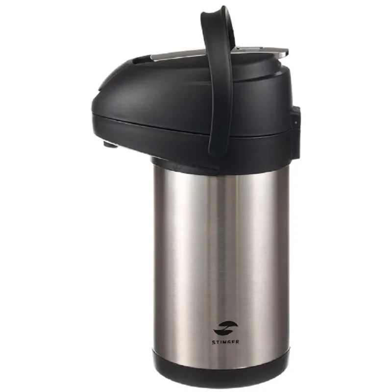 Термос с помпой Stinger,3л,нержав сталь,серебр, 24,4х17,5х37,2см,HP-3000H-2