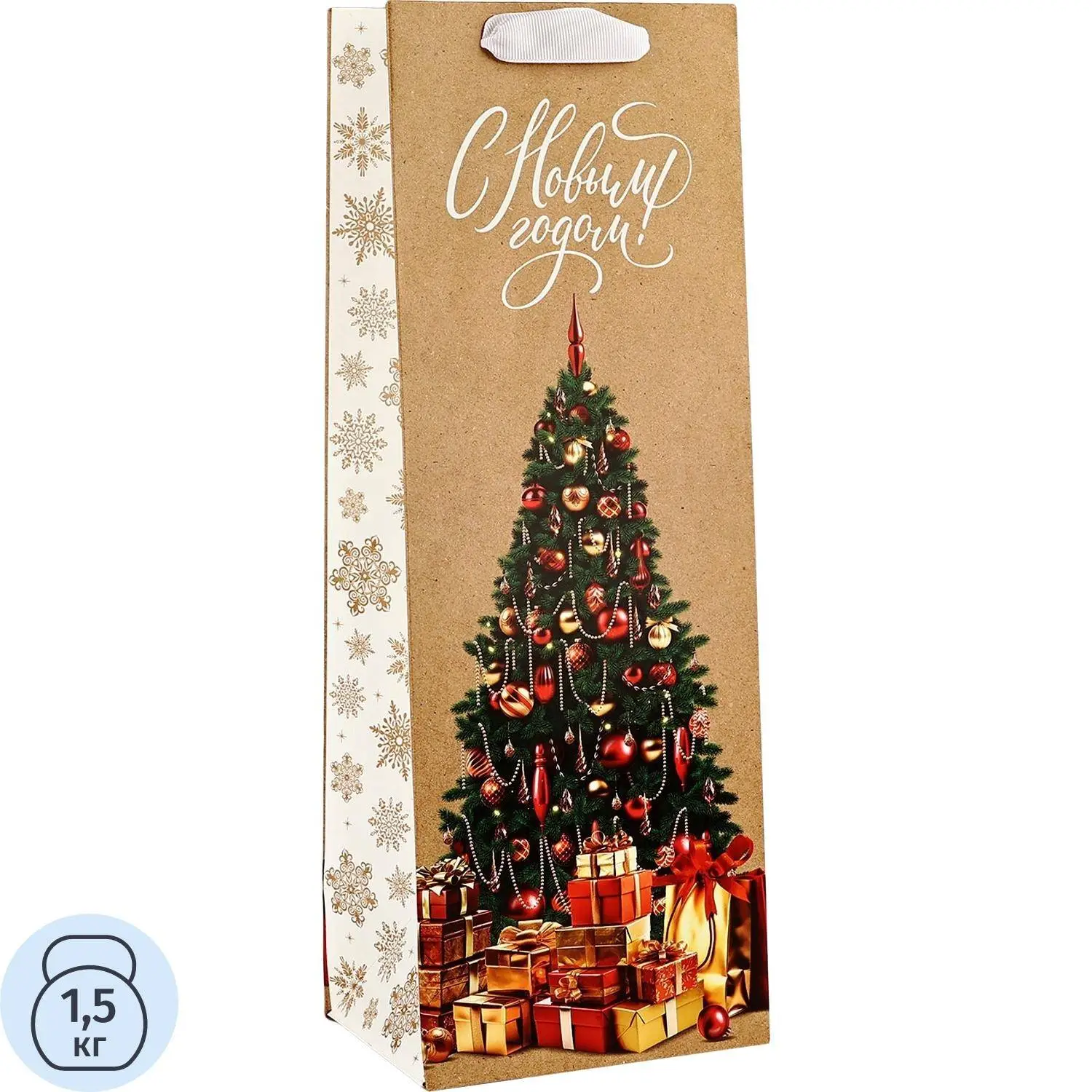 Пакет под бутылку 'Новогодние подарки', елка, 13 x 36 x 10 см 10350651 НГ