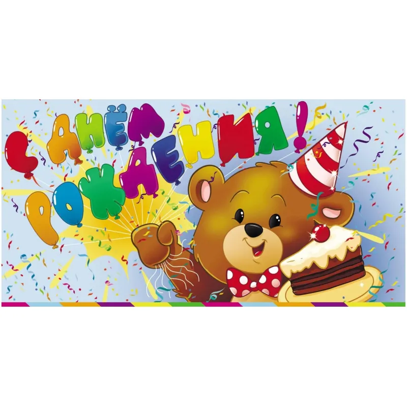 Конверт для денег С днем рождения! (мишка) УФ-лак 10шт/уп КД-274