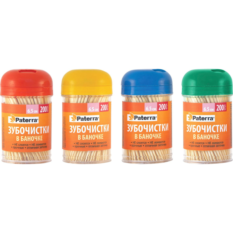 Зубочистки бамбук., PATERRA, 200 шт. в пластиковой баночке, (401-623)