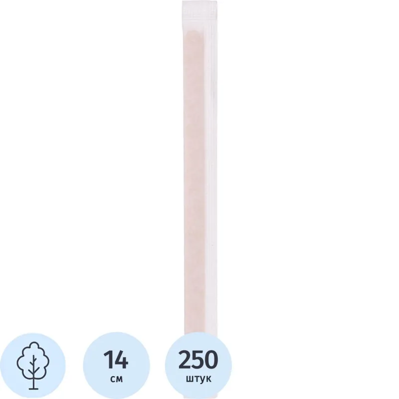 Размешиватель одноразовый деревянный L=14см инд.уп. (250шт/уп)