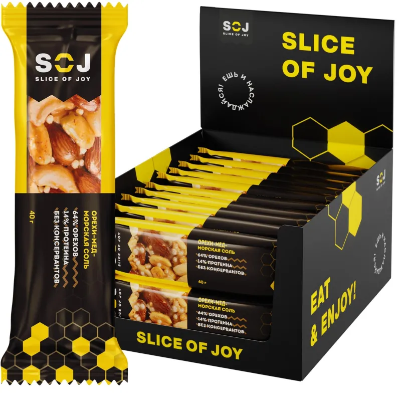 Батончик SOJ ореховый с медом орехи -мед-морская соль 40г 20шт/уп