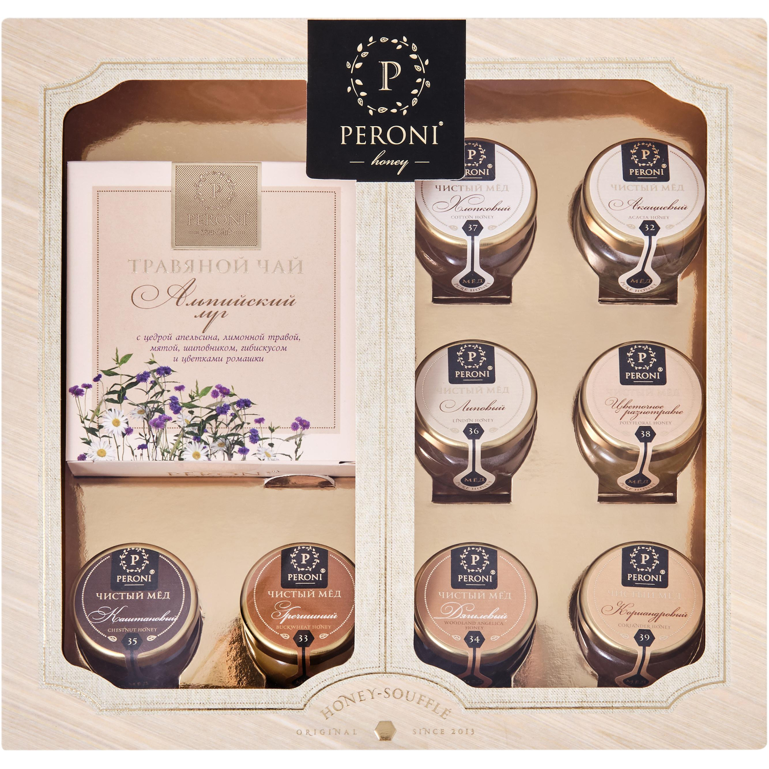 Мед в Наборе Чай& 8х30мл Peroni (жидкий мед)+ чай 35г Альпийский луг