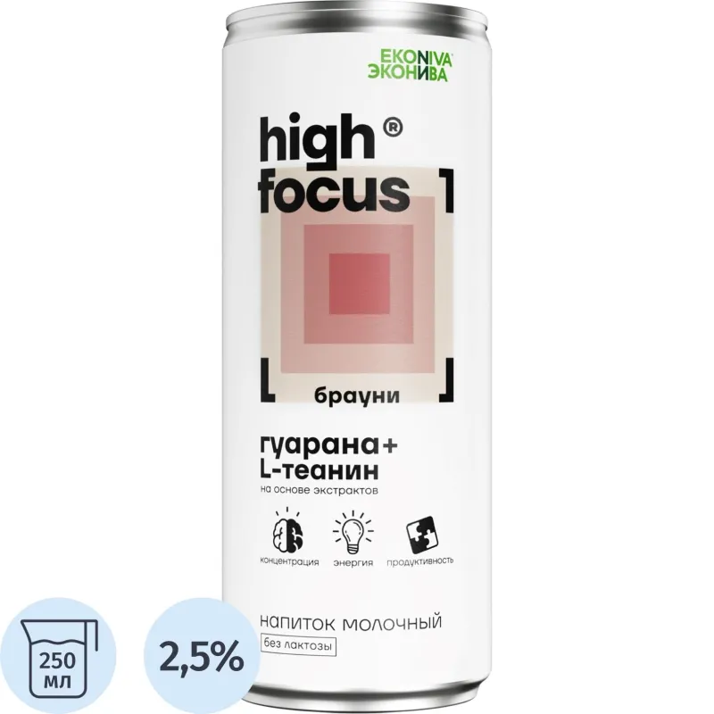 Напиток молочный стерил. Эконива Хай Фокус ЭН гр.-парм. 2,5% ж/б 250 мл