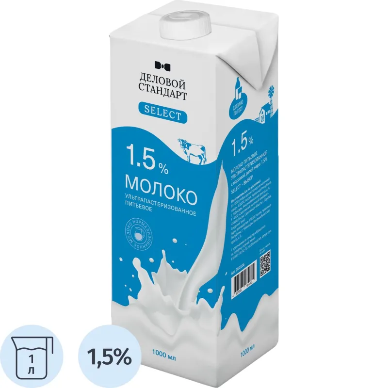 Молоко Деловой Стандарт Select ультрапастеризованное 1,5% , 1 л