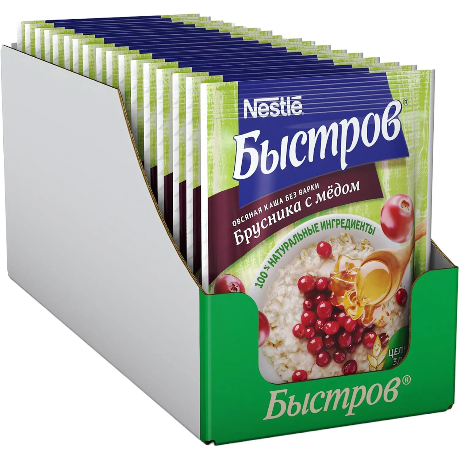 Каша Быстров овсяная с брусникой и медом (без варки), 40гх17шт/уп