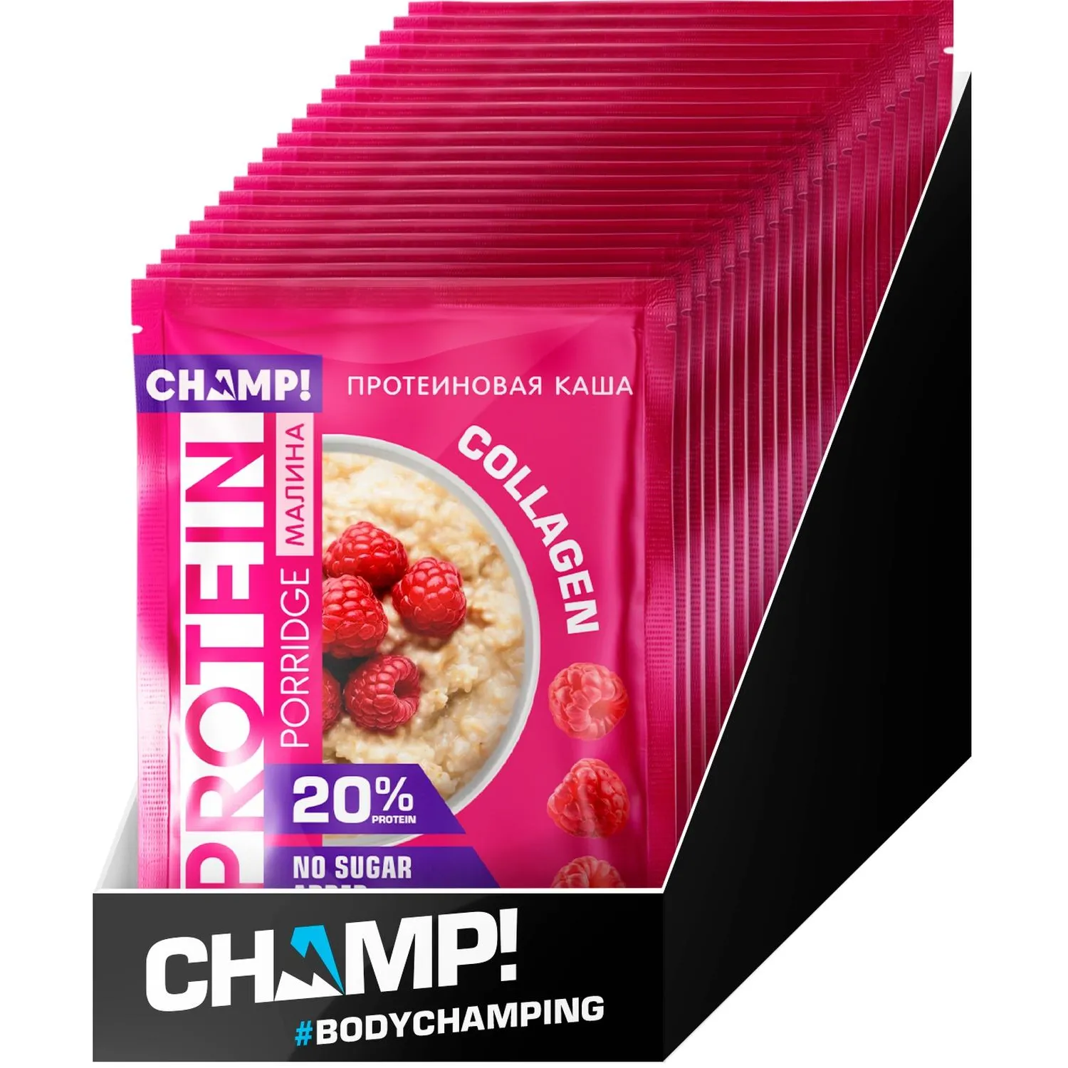 Каша протеиновая CHAMP! овсяная со льном малина пакет 40г x10шт/уп