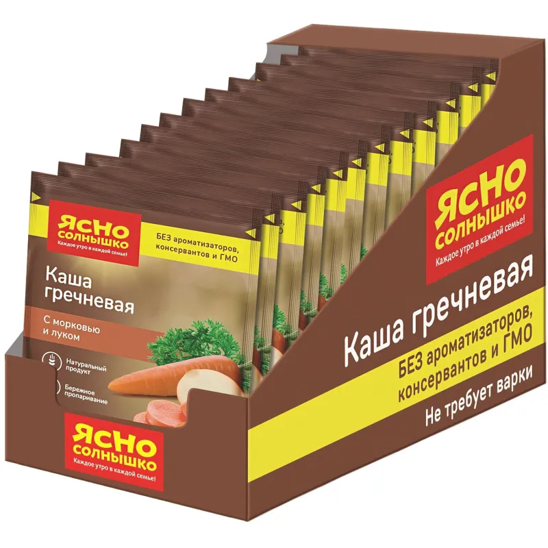 Каша Ясно Солнышко гречневая с грибами и жареным луком,шоу-бокс,45гх15шт/уп