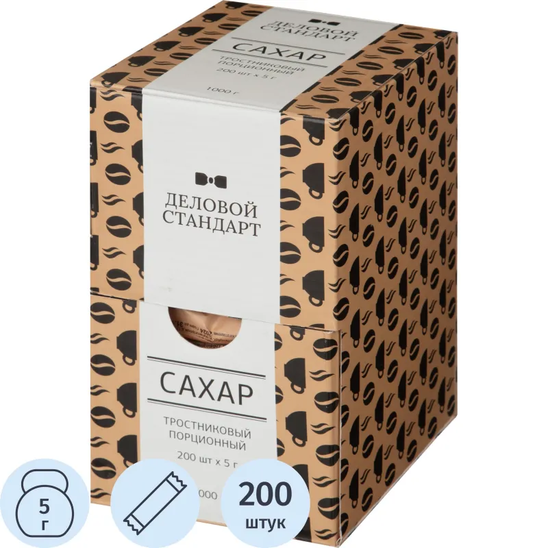 Сахар порционный в стиках Деловой стандарт тростниковый 5гр (200 шт/уп.)