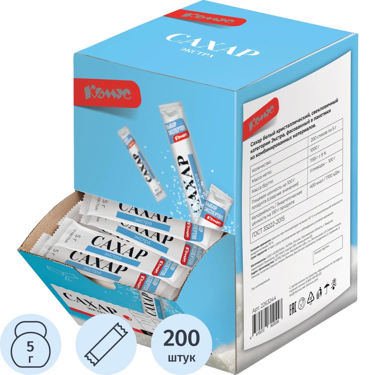 Сахар порционный Экстра в стиках Комус 5гx200шт/уп