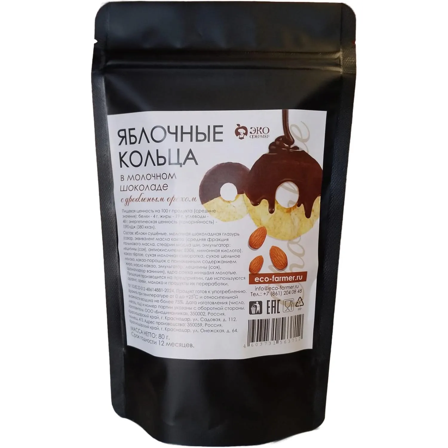 Яблоки сушеные кольца Экофермер в молочном шоколаде с дробленым орехом, 80г
