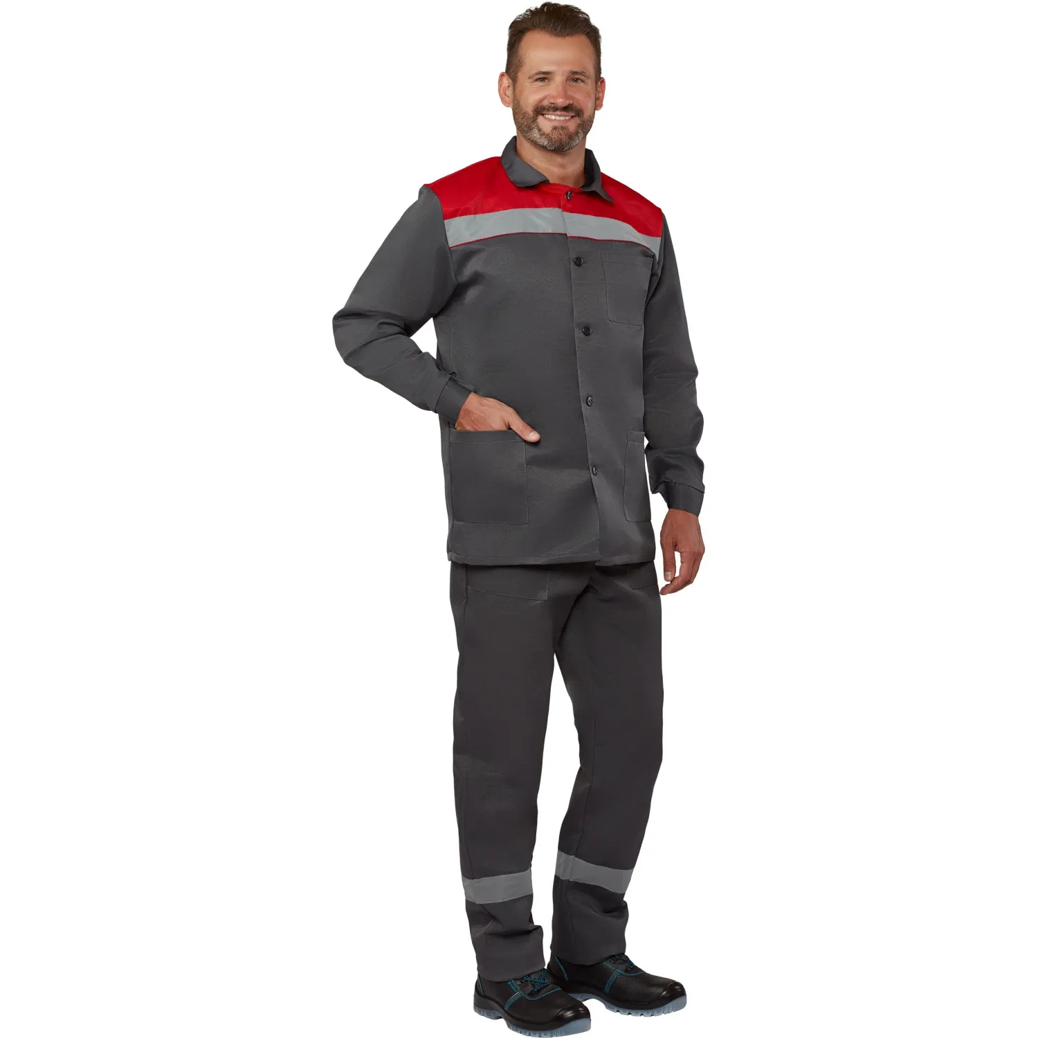 Костюм летний муж. л16-КБР с СОП сер/крас (р.52-54) 158-164