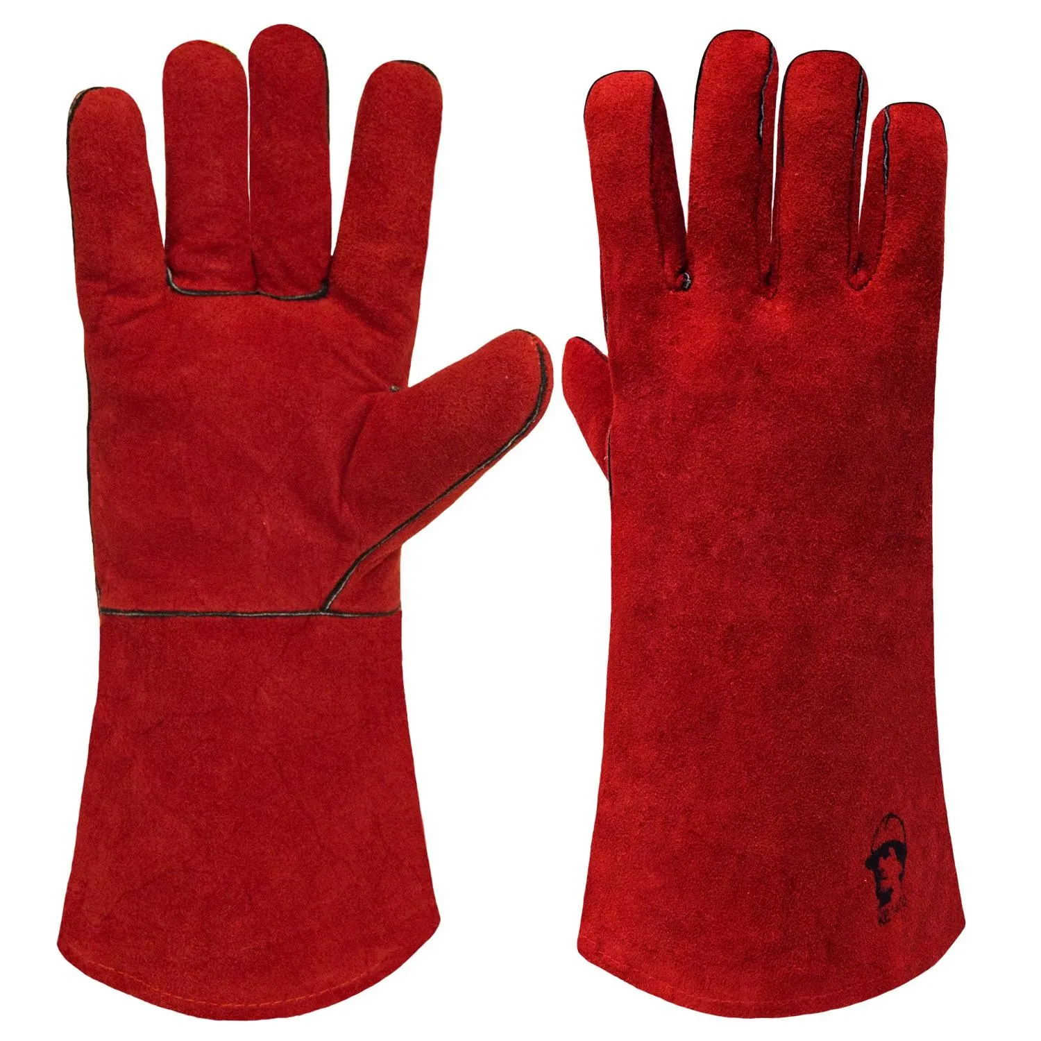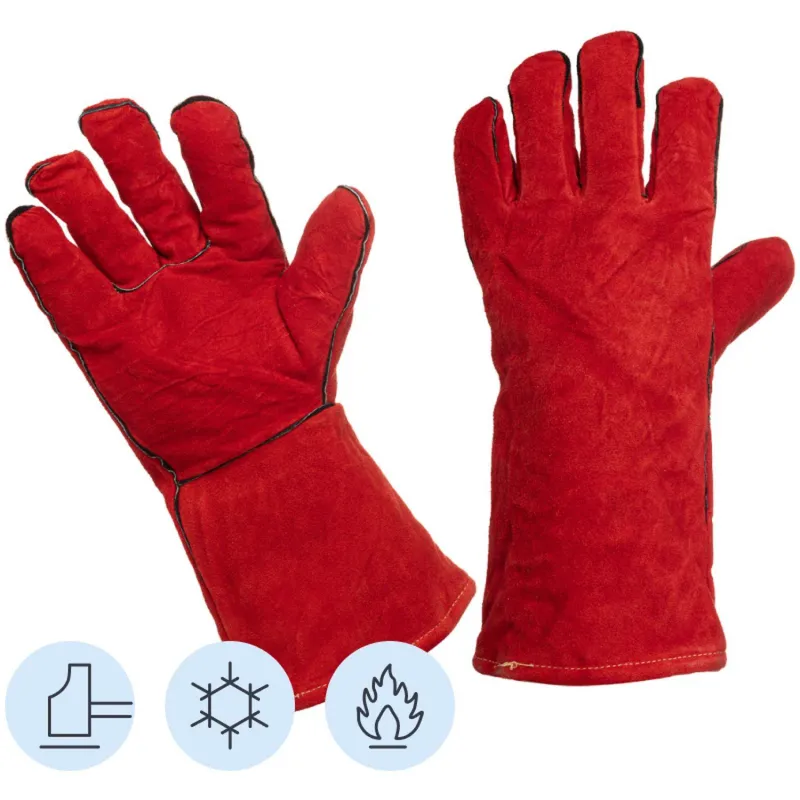 Краги спилковые пятипалые КЕ1470 красные с подкл. (12 пар/уп)