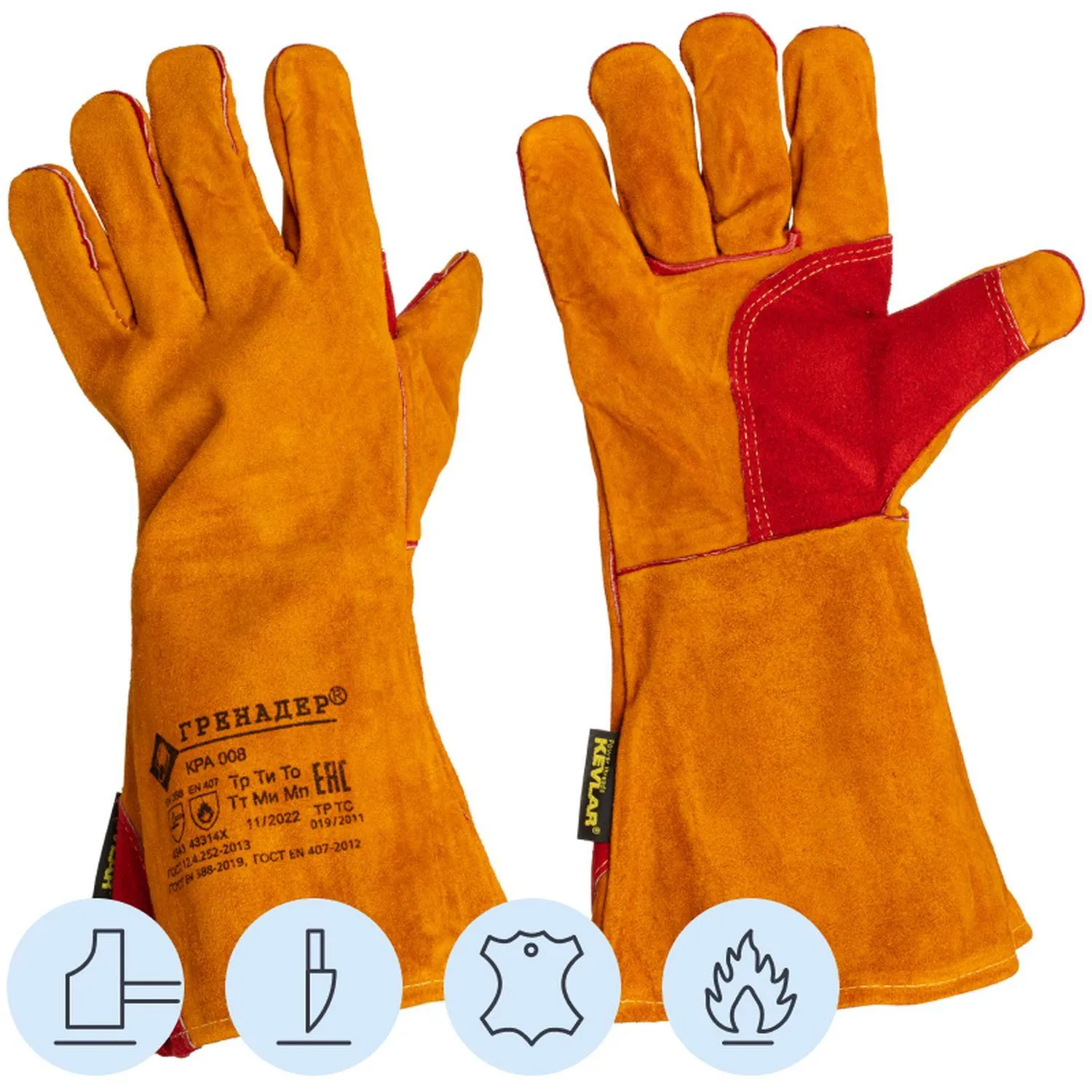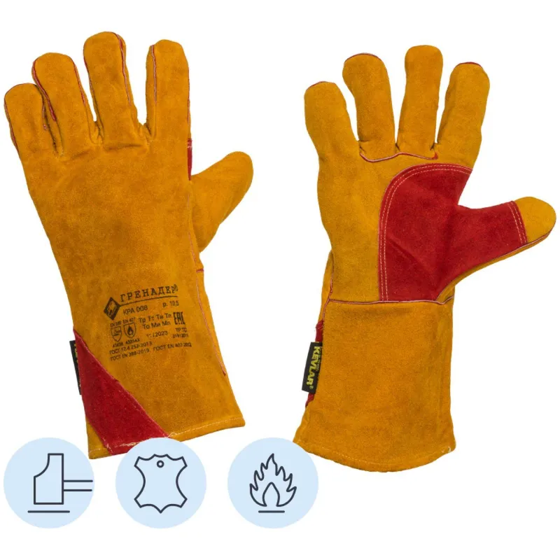 Краги сварщика спилковые Гренадер пятипалые удлин раструб желтые(Размер 12)