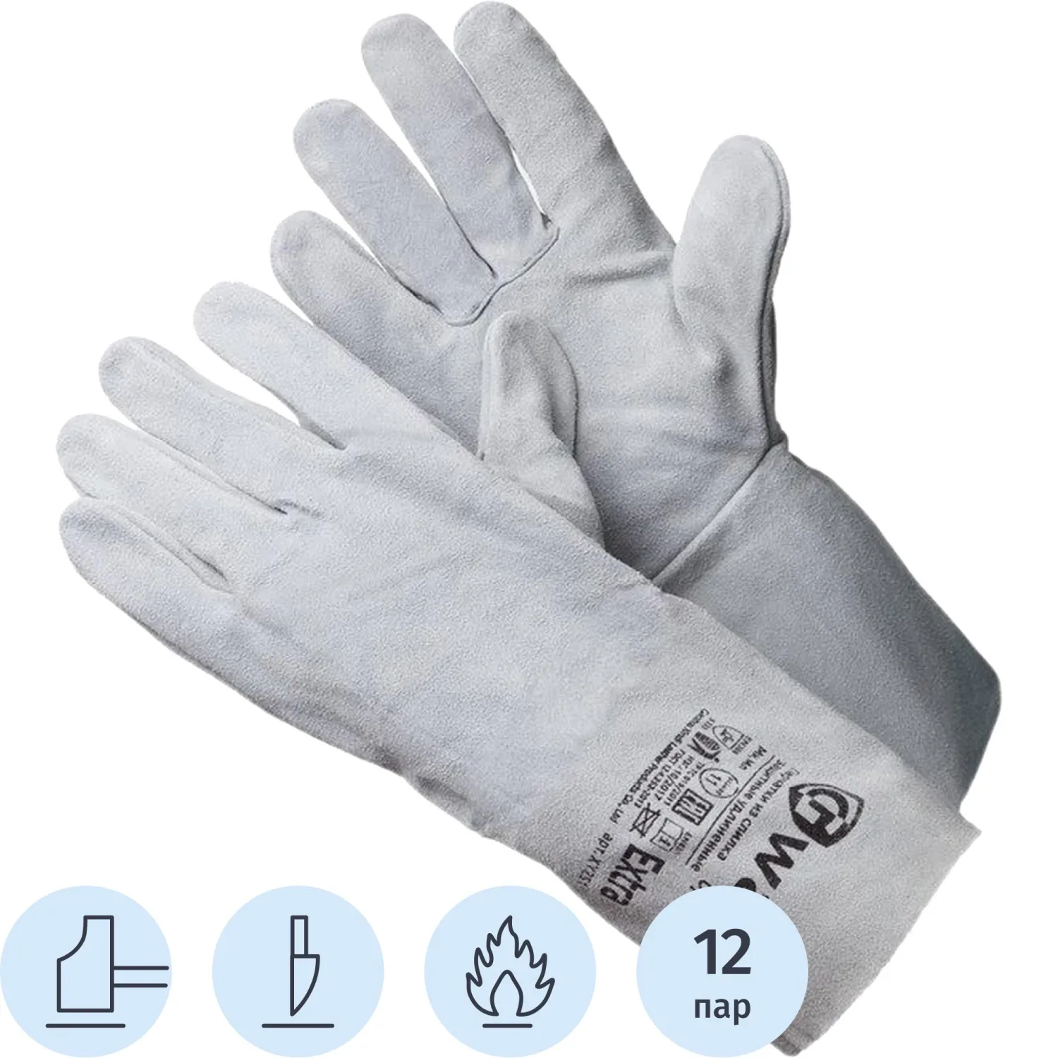 Краги спилковые пятипалые Gward Extra XY251 серые без подкл (12 пар/уп)