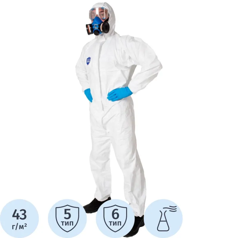 Комбинезон одноразовый защитный с капюшоном JetaSafety JPC58 белый р.М