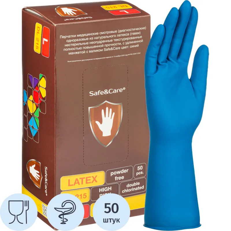Перчатки одноразовые латекс Libry High Risk синие (XL) 25пар./уп,ПС