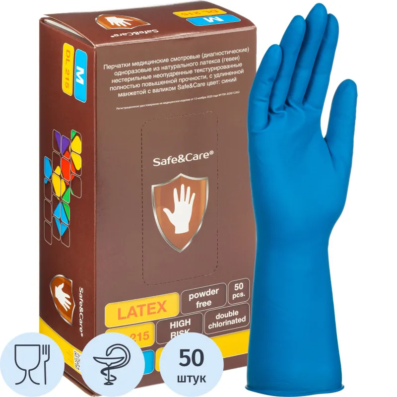 Перчатки мед.смотров. латекс., н/с, н/о, S&C HighRisk DL215(M)25пар/уп,ПС