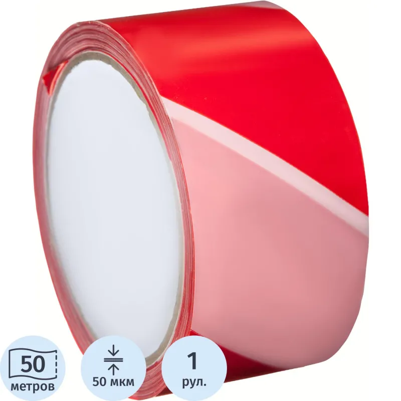 Лента для разметки Vell 50ммx33м, красно-белая, 0.15 мм, ПВХ (301588)