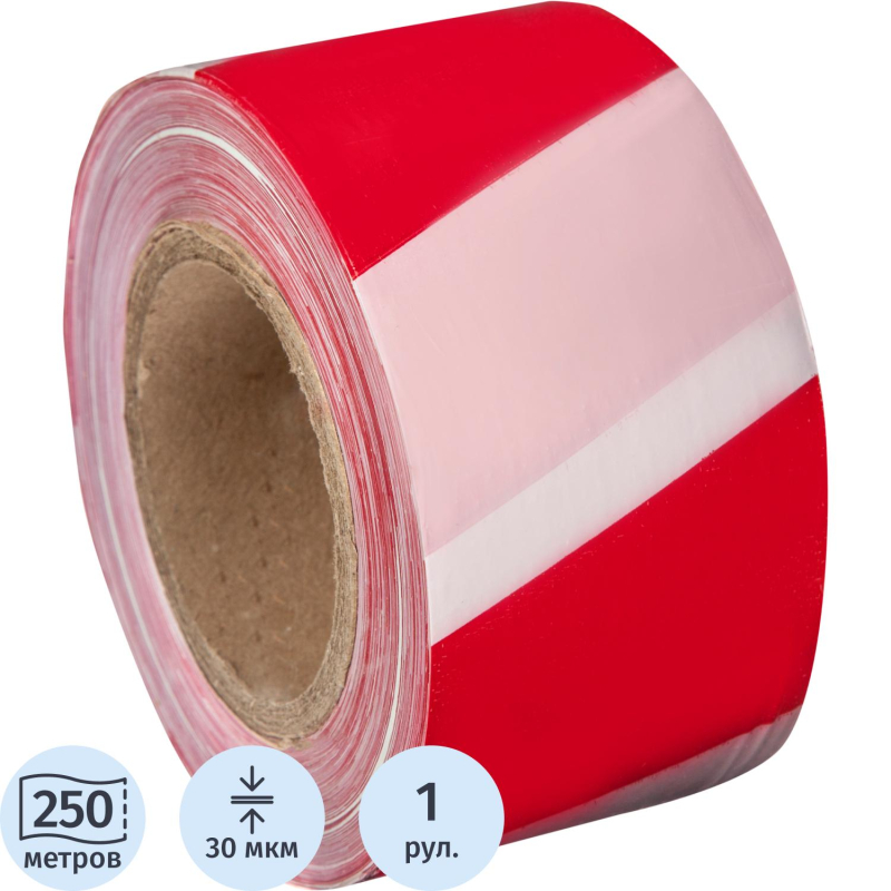 Лента оградительная красно-белая 75мм х250м
