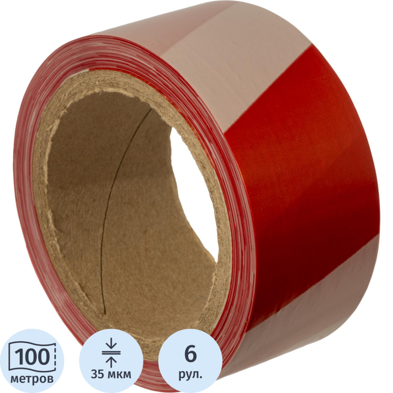 Лента оградительная красно-белая 50мм х100м, 6шт/уп