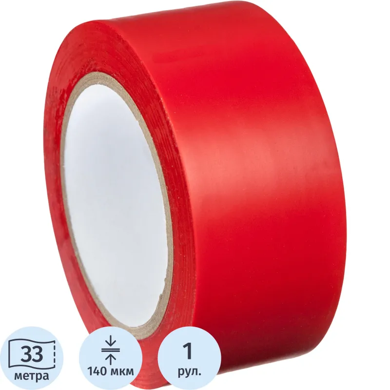 Лента для разметки Vell 50ммx33м, красная, 0,15 мм, ПВХ (301584)