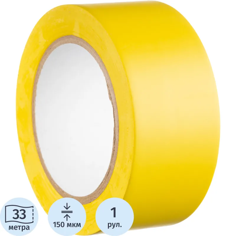 Лента для разметки Vell 50ммx33м, желтая, 0,15 мм, ПВХ (301583)