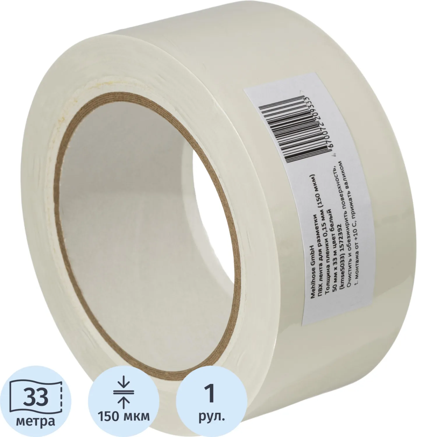 Лента для разметки ПВХ 50мм x 33м (150мкм) белый