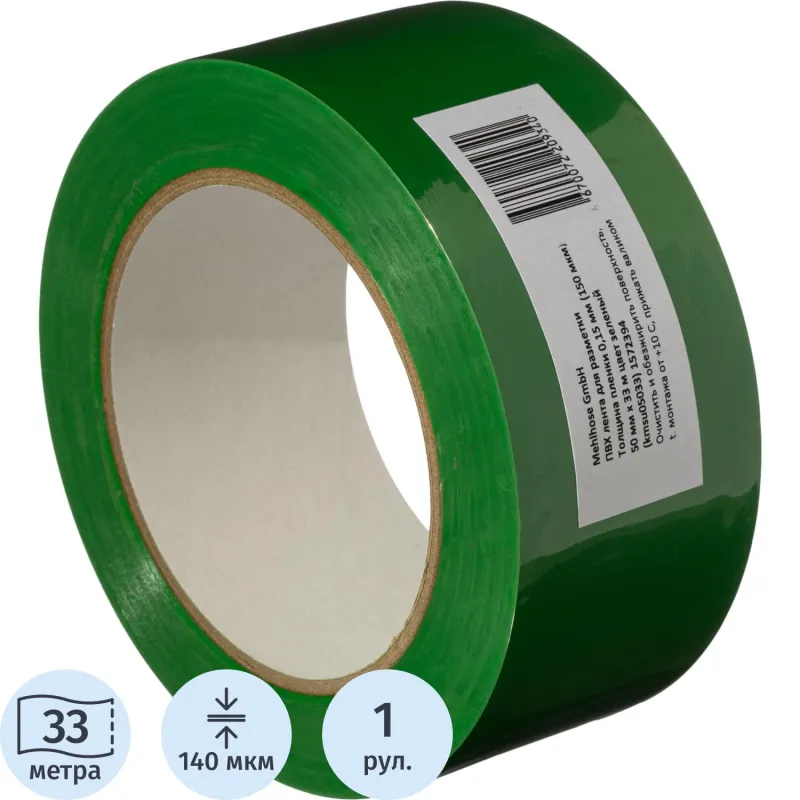 Лента для разметки ПВХ зеленый 50ммx33м (КМSU05033)